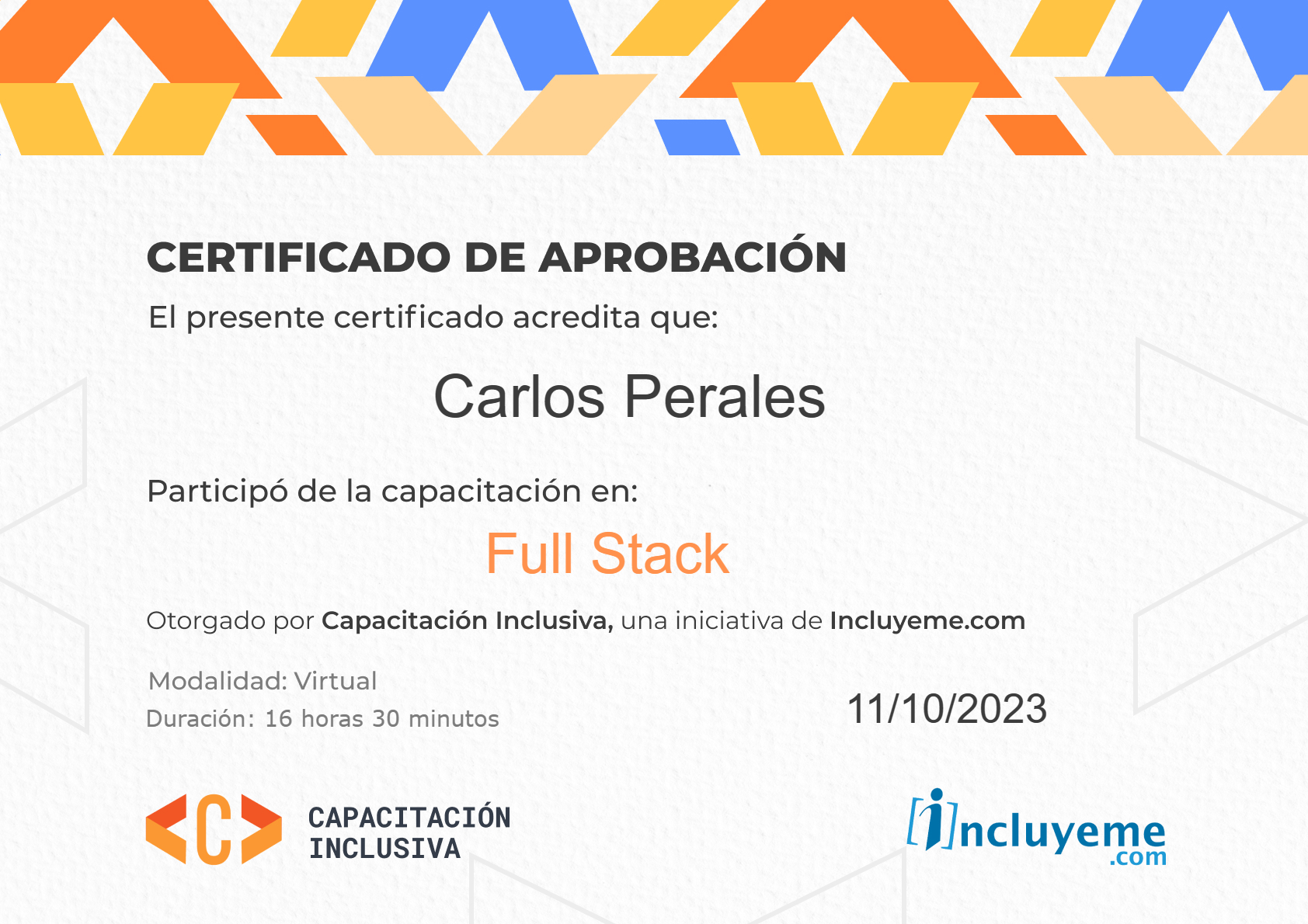 - Talento Digital: Desarrollo de aplicaciones Full Stack PYTHON (462 horas) (2024)